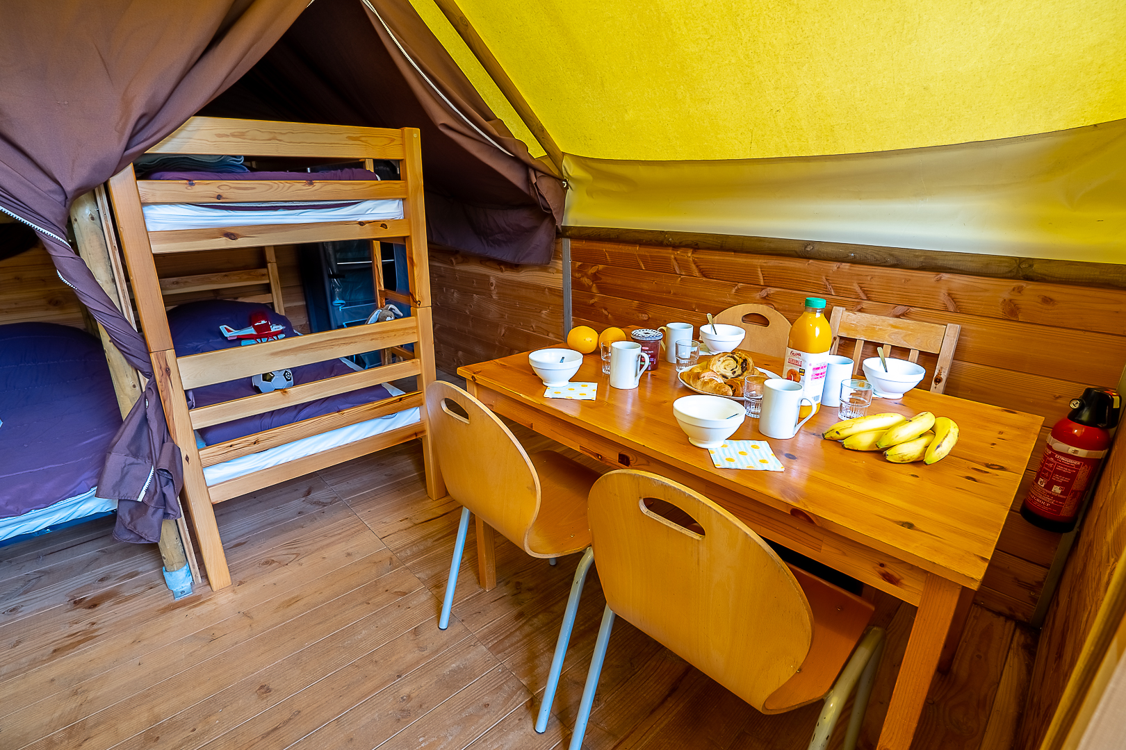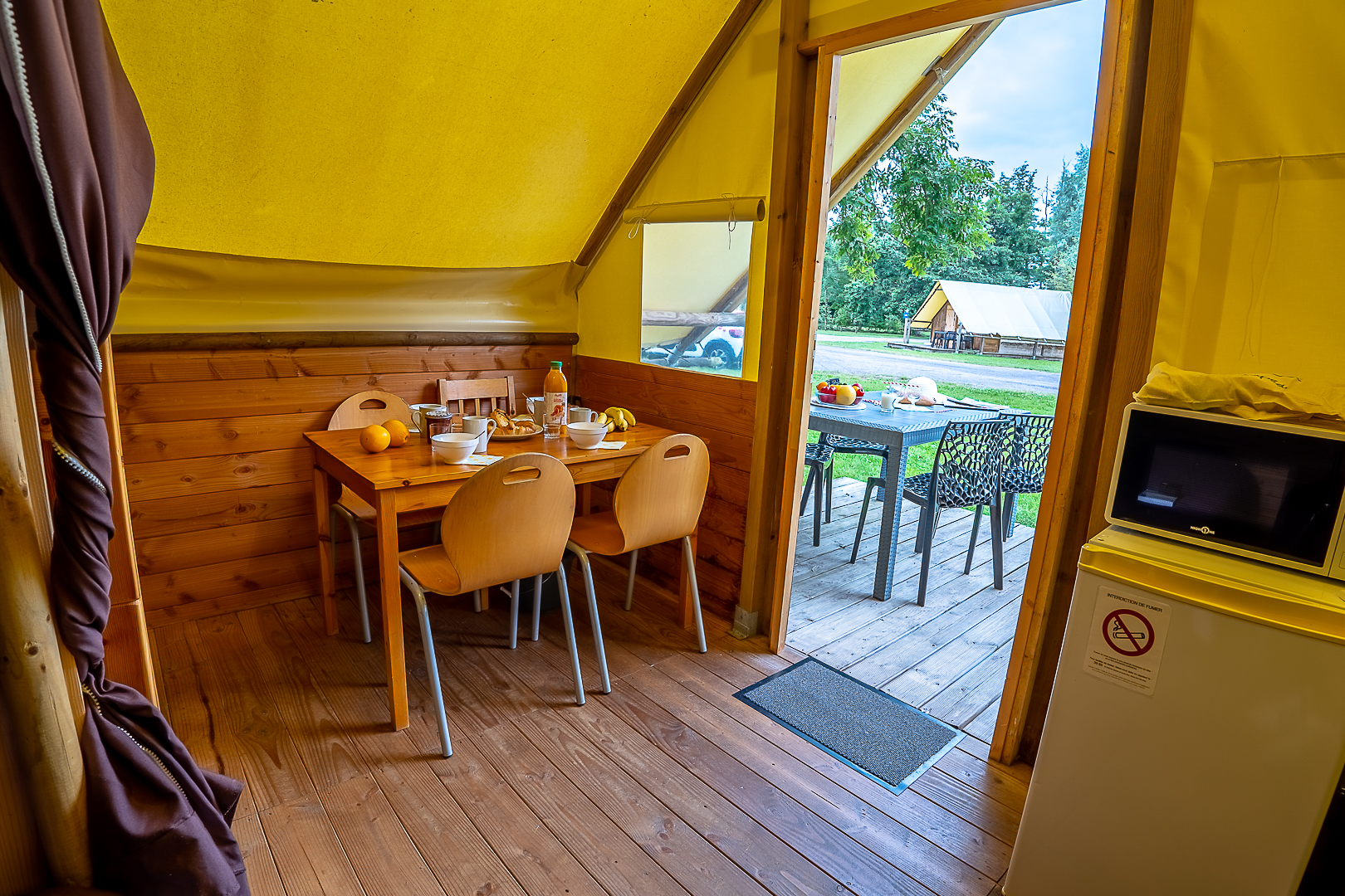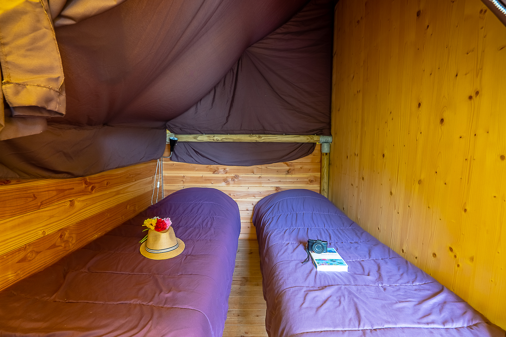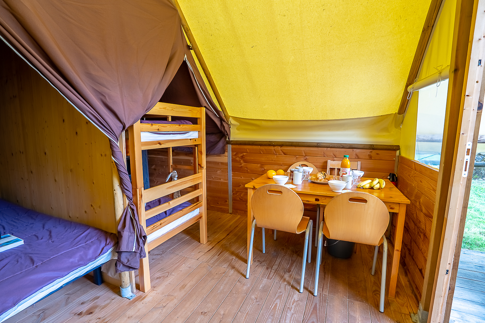 Ontdek de charme van traditioneel kamperen in onze Canadese tent van 15 m², ideaal voor families of stellen die op zoek zijn naar een natuurervaring.