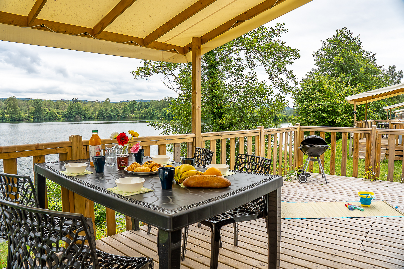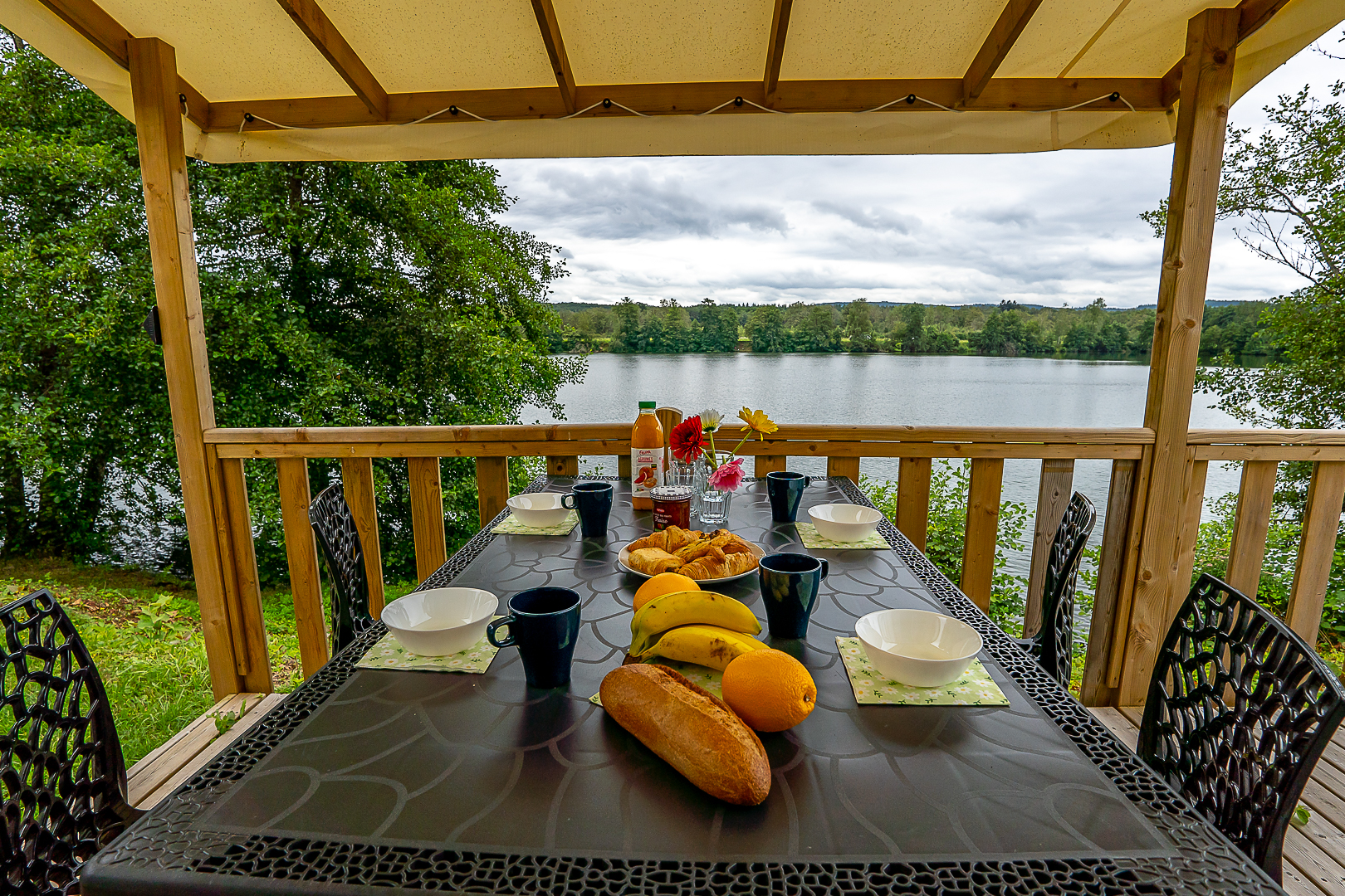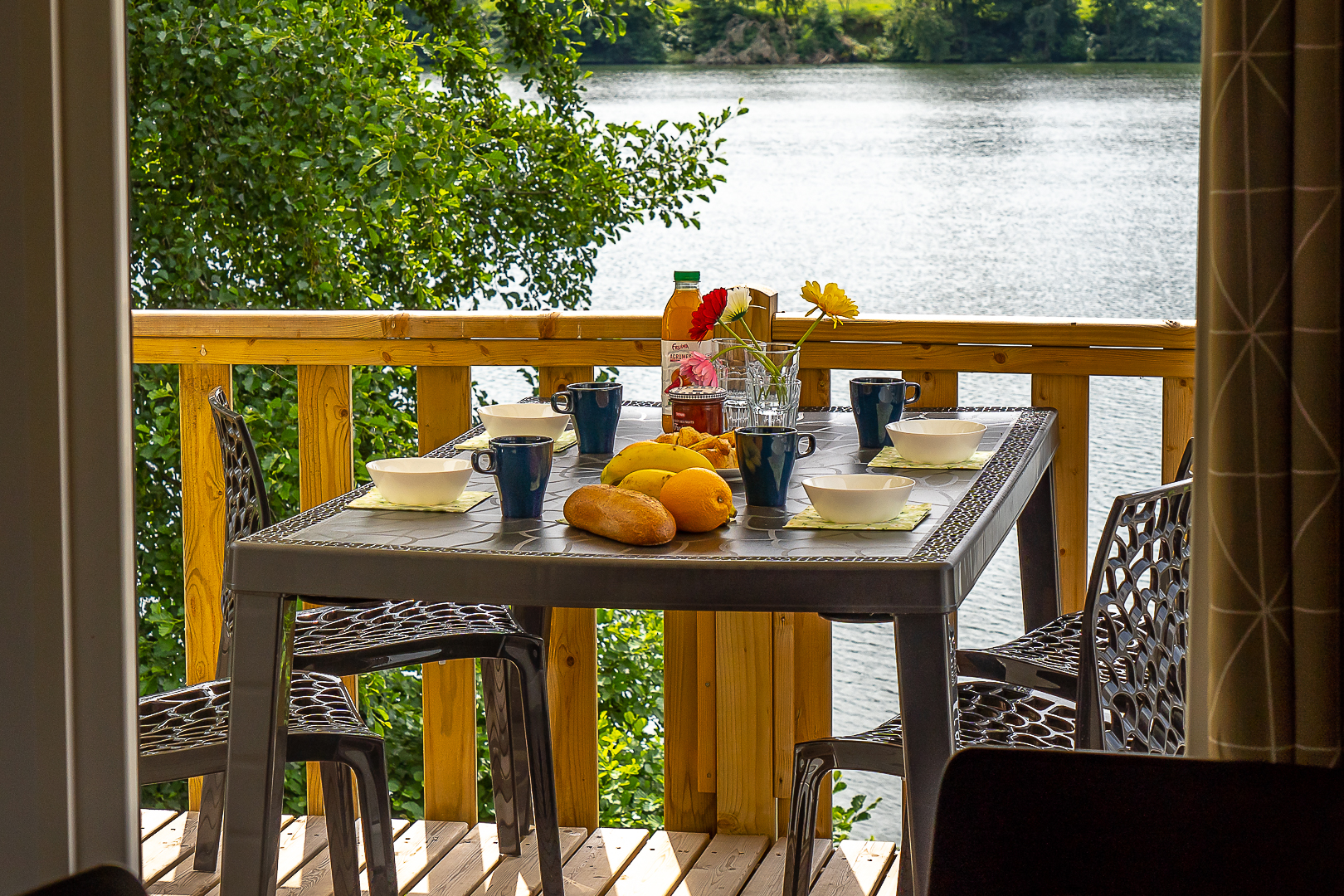 Petit-déjeuner en terrasse avec vue sur le lac