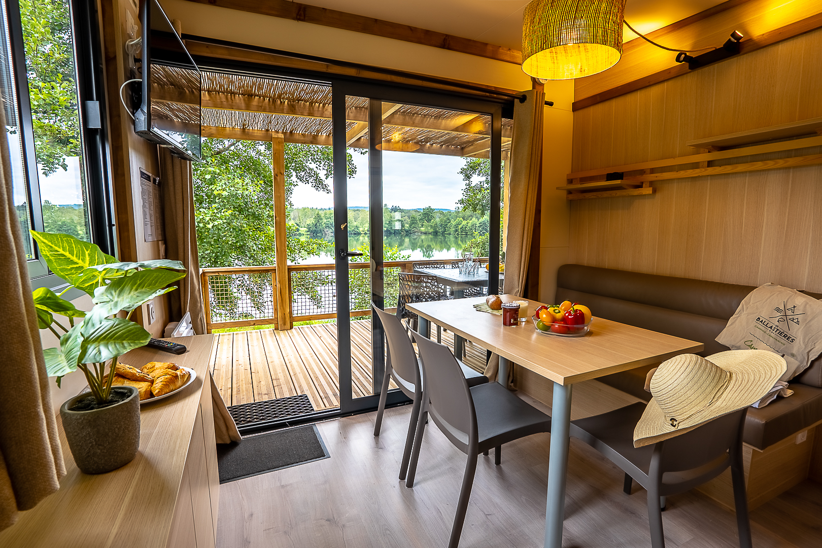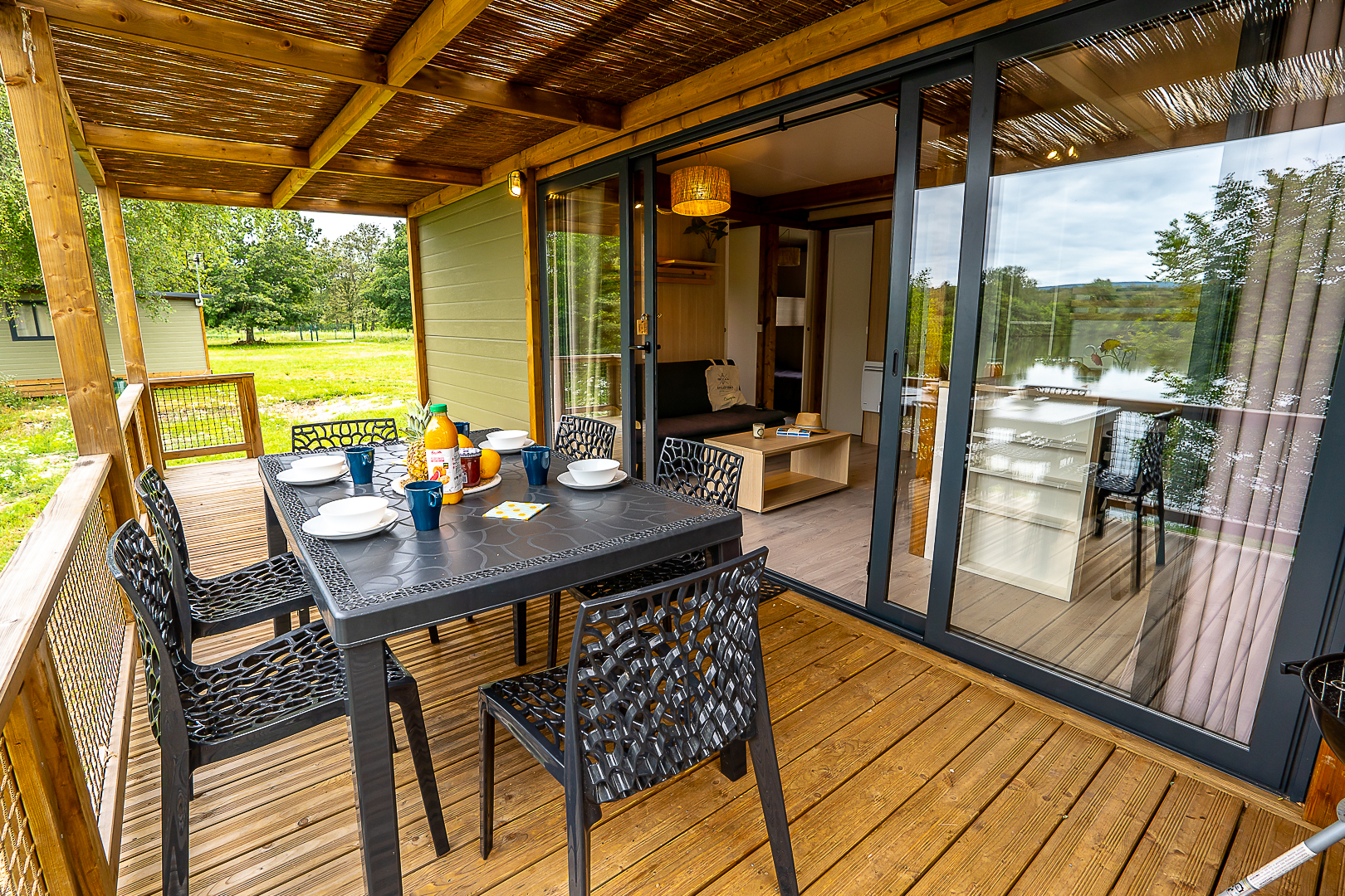 Onze waterkantcottage van 37,50 m² is perfect ingedeeld en beschikt over 2 slaapkamers, geschikt voor maximaal 5 personen. Gelegen in een rustige omgeving in het hart van de camping biedt het alle comfort voor een aangenaam verblijf.